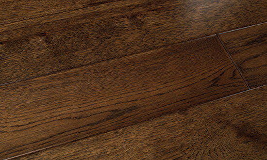 The smooth, handcrafted, North American hardwoods of the Hacienda collection evoke an aged look and distinctive style with an American flair. This long length, plain sawn, hardwood material with solid hardwoods features a 4mm. solid wear surface with the finest plywood available.